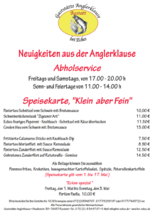 Spezielle Sonderkarte „Klein aber Fein“ zum Abholen in der Anglerklause.